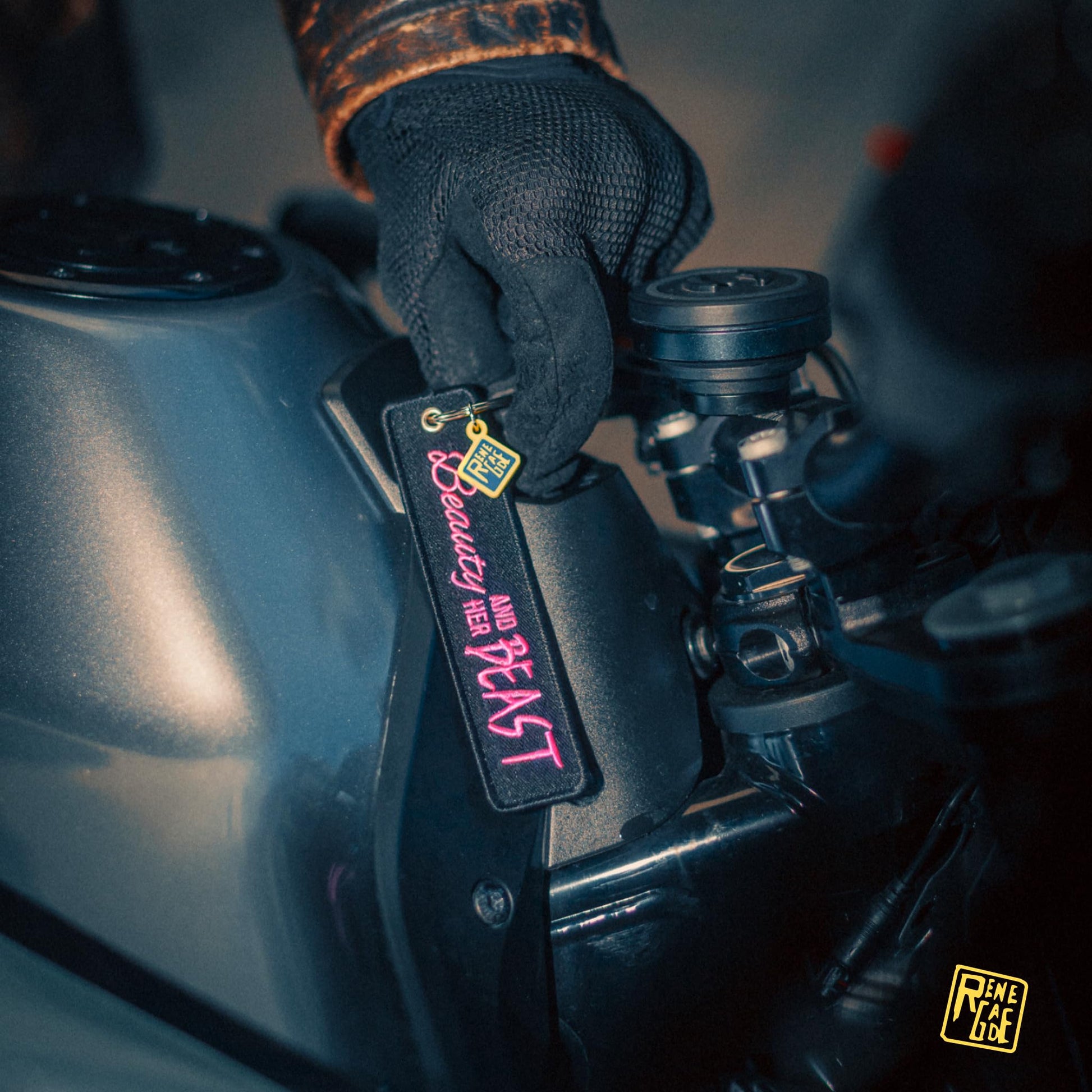 KRATZFEST - Keine Sorge um Kratzer an deinem geliebten Motorrad! Unsere Schlüsselanhänger sind aus strapazierfähigem Gewebe gefertigt und verfügen über keine scharfen Ecken oder Kanten.