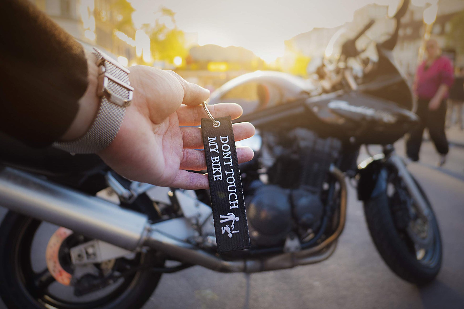 KRATZFEST - Keine Sorge um Kratzer an deinem geliebten Motorrad! Unsere Schlüsselanhänger sind aus strapazierfähigem Gewebe gefertigt und verfügen über keine scharfen Ecken oder Kanten.