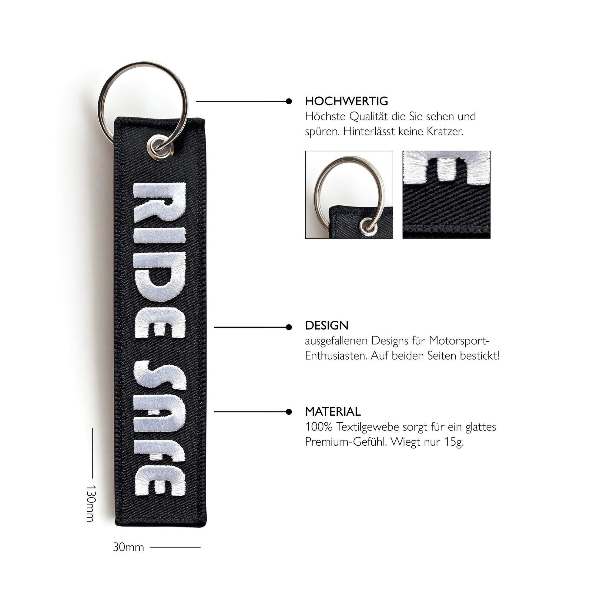 KRATZFEST - Keine Sorge um Kratzer an deinem geliebten Motorrad! Unsere Schlüsselanhänger sind aus strapazierfähigem Gewebe gefertigt und verfügen über keine scharfen Ecken oder Kanten.